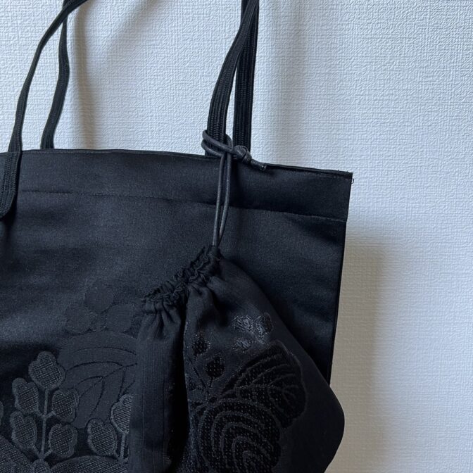 【セミオーダー】喪服帯を使用した帯バッグ(巾着付)